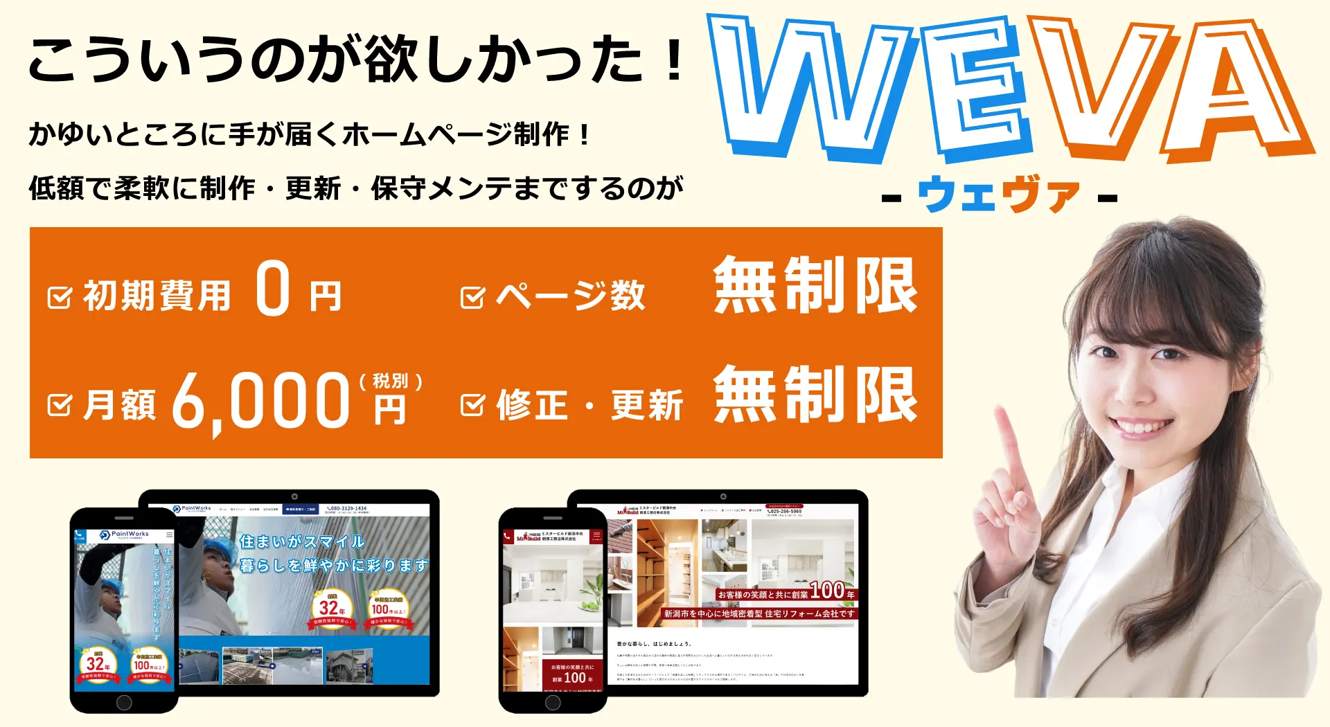 Wevaは「お客様に満足いただけるホームページを驚きの低価格で提供する」をコンセプトにサービス提供を始めました。