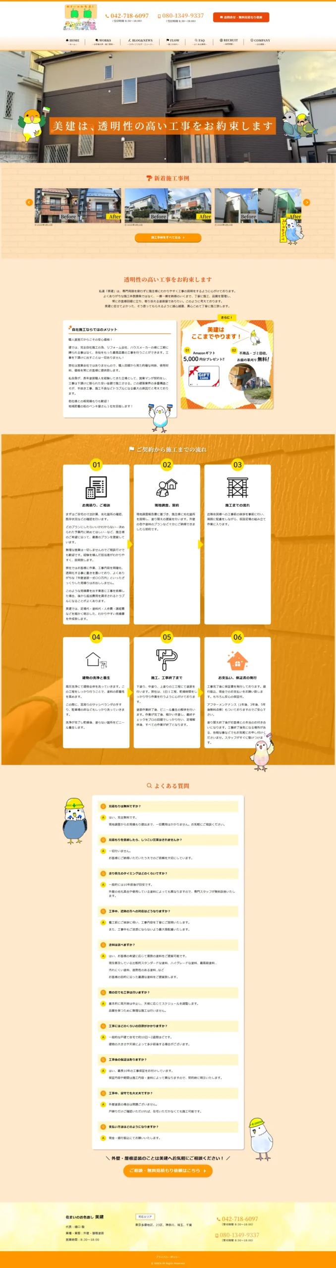 住まいのお色直し 美建様(外壁塗装・屋根塗装) 2025 5/20 制作実績 オレンジ系 2025年5月20日 PCで見た時の画面↓ スマートフォンで見た時の画面↓ 実際のホームページはこちら 制作実績 オレンジ系 よかったらシェアしてね! URLをコピーしました! URLをコピーしました! エングロービスプロ株式会社様(ビジネスサポート) 株式会社ビッグヤード様(デリバリー・ケータリング) 関連記事 DEL MAR(デルマール)様(レンタルスペース) DEL MAR(デルマール)様(デリバリー・ケータリング) 株式会社ビッグヤード様(デリバリー・ケータリング) エングロービスプロ株式会社様(ビジネスサポート) ULOS様(飲食店の総合コンサルティング) 株式会社SCAFFOLDING様(総合とび工事) 合同会社ZENKU様(抗菌&カビ取り業者) 新田石材様(石材店)