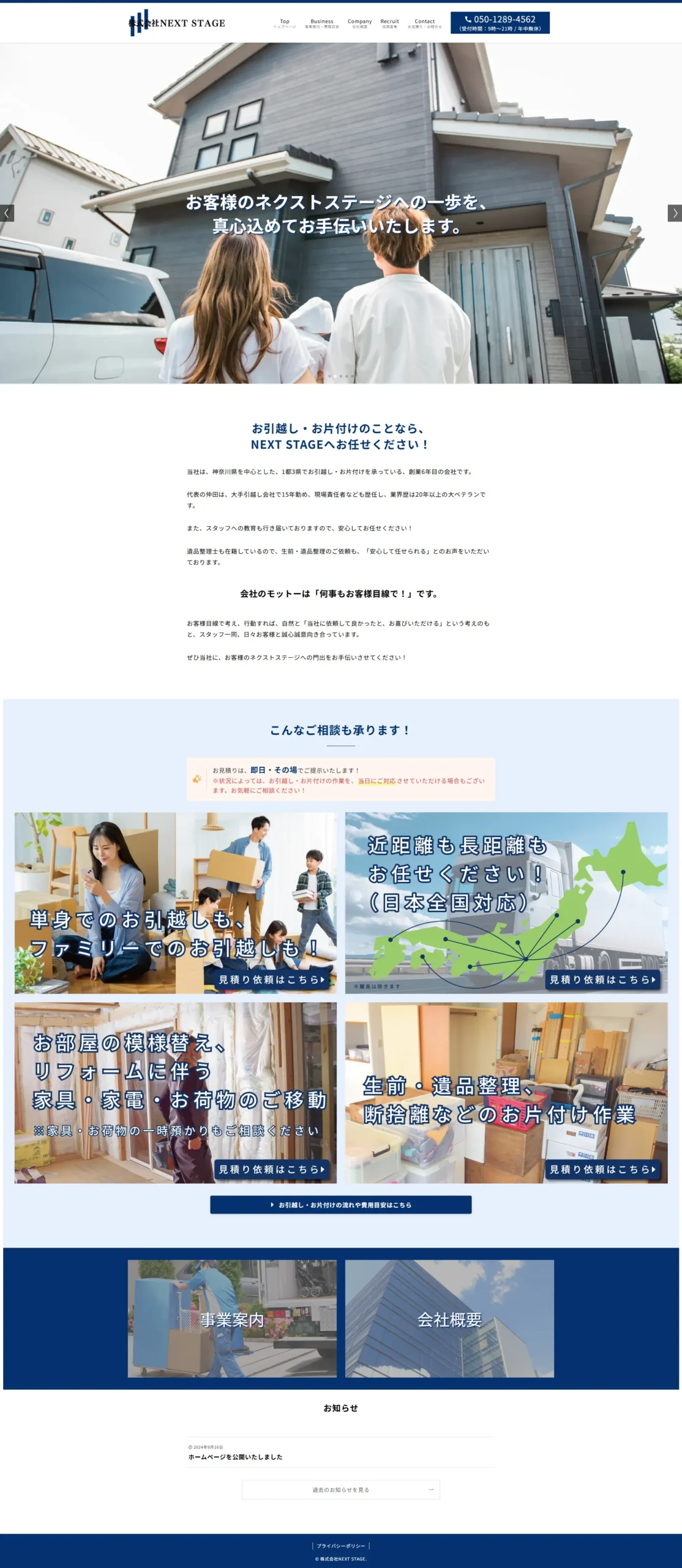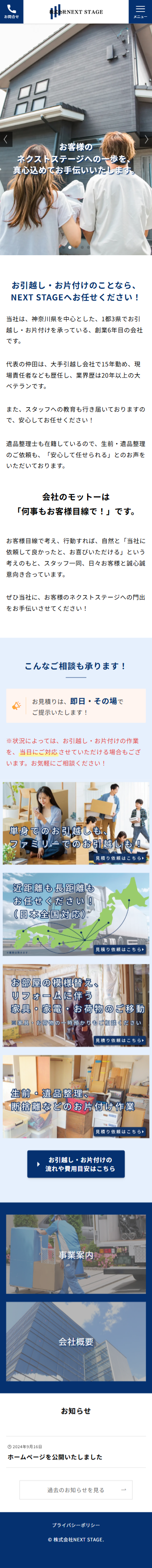 引越し業者のNEXT STAGE様のホームページを制作させていただきました。