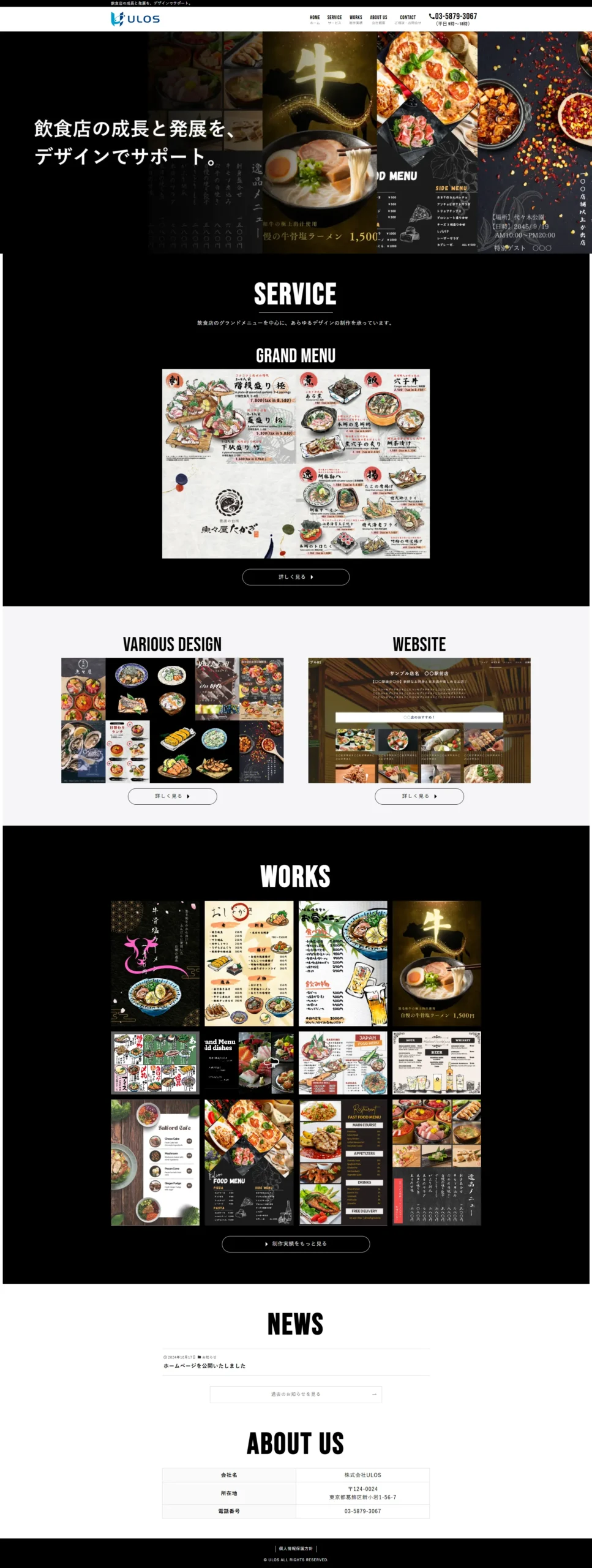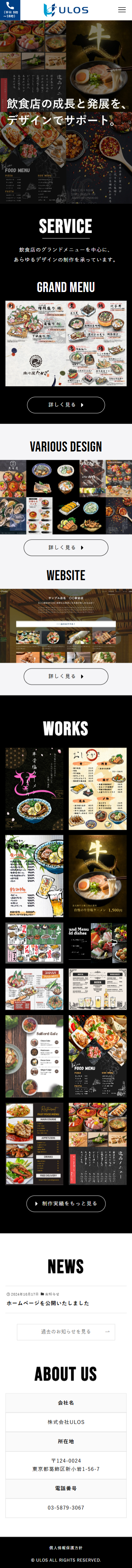 デザイン制作会社のULOS様のホームページを制作させていただきました。